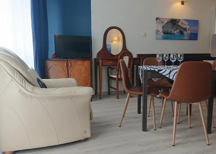 Obiekt oferuje również pełnowymiarową kuchnię z czajnikami elektrycznymi, lodówką i przyborami kuchennymi. Goście docenią dania kuchni włoskiej w Pizzeria Retro, zlokalizowanej w ciągu 14 min spacerem stąd. Najbliższe lotnisko to lotnisko Szczecin-Goleniów im. NSZZ 'Solidarność', 95 km od Apartament Apartament Santorini Kasprowicza 12A 440 w Kołobrzegu. Dla wygody gości zainstalowano park wodny, patio i ogród. Obiekt noclegowy jest popularny wśród wielbicieli pieszej turystyki i Wędkarstwa.